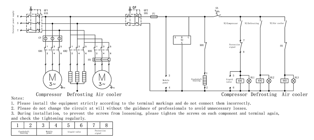 LT-588F touch screen temperature controller, cooling,defrosting control: temperature setting upper and lower limit control; it has multiple protection functions, including overload protection, missing protection, wrong protection, three-phase unbalanced protection, WlFl control etc.,dual display screen can visually view the current temperature, set the temperature running current, etc. Password protection function, cable trough and independent neutral line bar make the control box more beautiful.