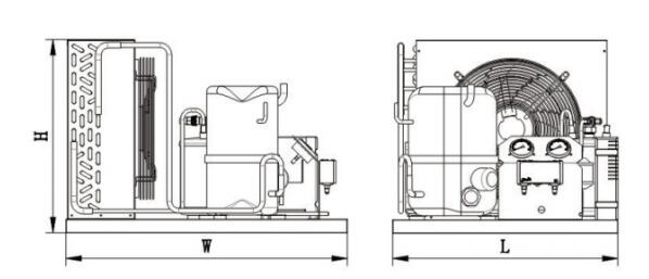 Compressor : 5HP, Condenser【 Fan Diameter: 2*400 mm, Air Flow: 2*3400 m3/h, Fan Voltage : 220V/1PH/50Hz Power of Fan: 2*180 W, 4 Poles, 13.7 kW 】, S: 1/2" D: 1/2" Overall Dimension: 1030*700*720 mm