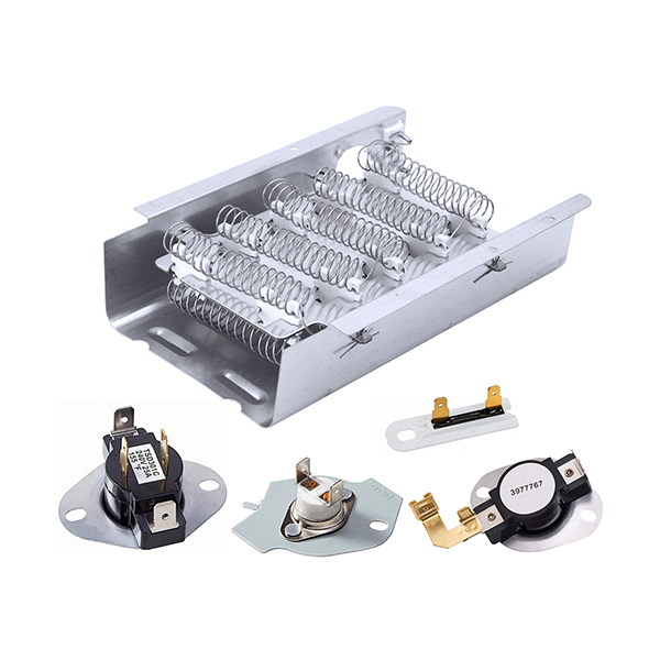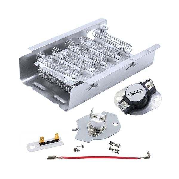 Include 1 PC AL7747 dryer heating element, 1 PC AL9973 dryer thermal cut-off fuse kit, 1PC AL7274dryer thermistor and 1 PC ALT401 dryer thermal fuse.